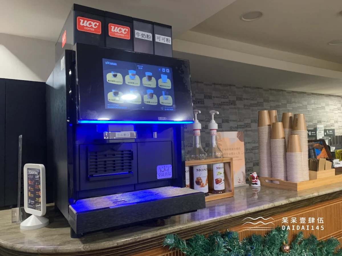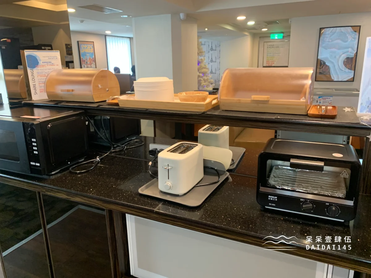 旁邊的吧台還有咖啡機和茶包,都可以自助式取用,無論你是下午肚子餓,或是半夜想吃點宵夜,來 2 樓的交誼廳就對了!
